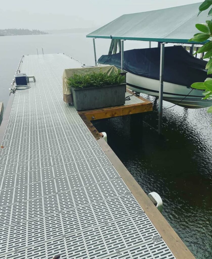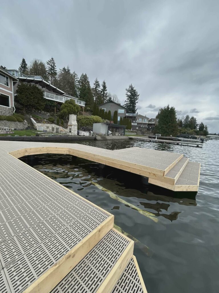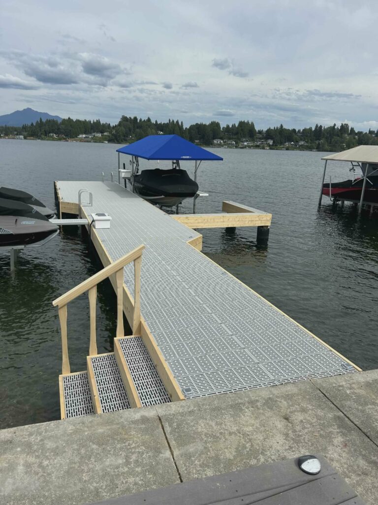 We use marine-grade materials like pressure-treated wood, composite decking, and corrosion-resistant hardware.